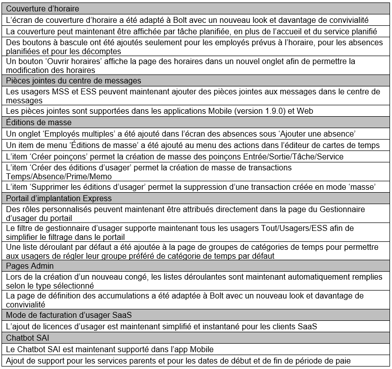 Cette section décrit les nouvelles fonctionnalités de cette version.