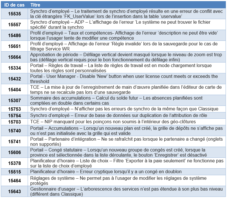 Bugs de clients réparés