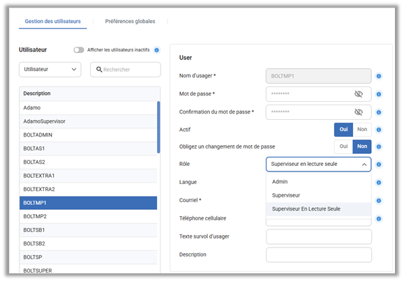 Améliorations du gestionnaire d’usager – Le filtre de gestionnaire d’usager du portail a été simplifié pour faciliter la recherche des comptes d’usager et des rôles personnalisés peuvent maintenant être attribués aux usagers directement à partir de l’écran de gestionnaire d’usager du portail.