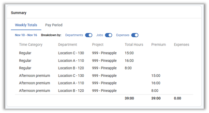 Summary Panel – Users can now see Premium hours and Job Descriptions in the summary panel when reviewing Timesheets