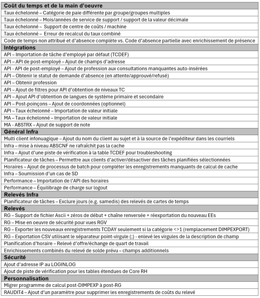 La mise à jour de février 2026 se concentre sur les enrichissements du taux échelonné et de l’intégration. Cette mise à jour introduit aussi plusieurs fonctionnalités importantes d’infrastructure incluant les relevés migrés et la nouvelle fonctionnalité RG et MA qui remplace complètement l’outil utilitaire d’importation/exportation. Ceci a comme résultat que cette mise à jour sera la dernière offerte en 32 bits. Toutes les mises à jour subséquentes seront uniquement fournies en 64 bits.