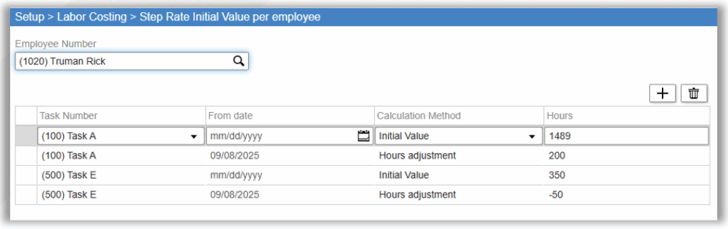 Hours Adjustments – After setting an initial value of hours, adjustments can be made on specific dates using the Hours Adjustment option. Hours can be added by using a positive value or reduced by using a negative value.