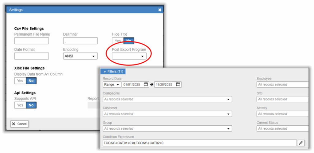 Post-export program and Condition Expression support in RG – Condition Expressions can now be added to the filter in RG, and a post-export program can be selected to automatically process a generated file.